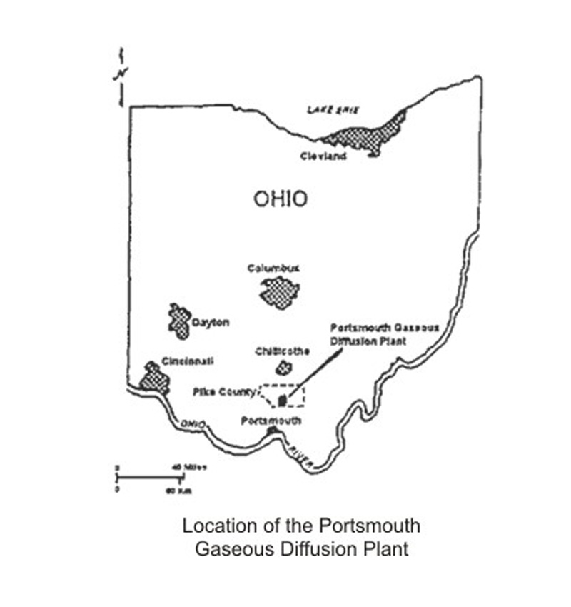 On August 12, 1952 the Atomic Energy Commission announced that the new plant would be constructed on a site in close proximity to the Scioto River, in a rural region of Pike County, Ohio approximately 22 miles north of Portsmouth, Ohio.