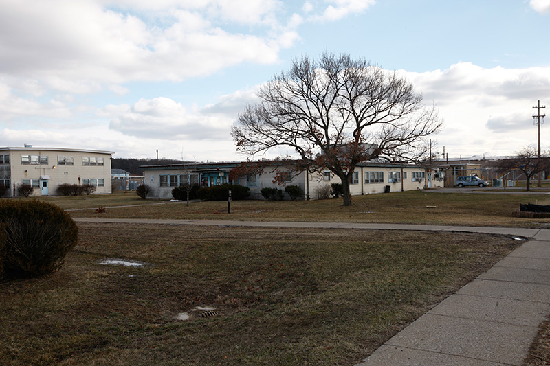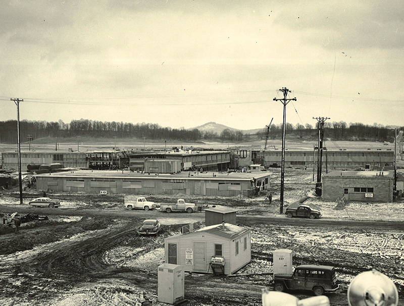 Looking east at the X-100 Building at the top and the hospital below, December 15, 1953