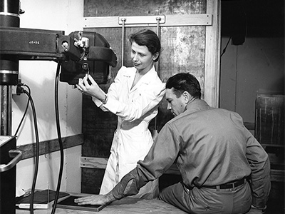 Medical Technician Jean Scurlock x-rays T.E. Broyles at the X-101. (March 12, 1954)