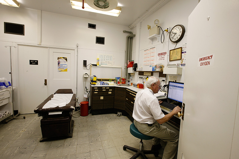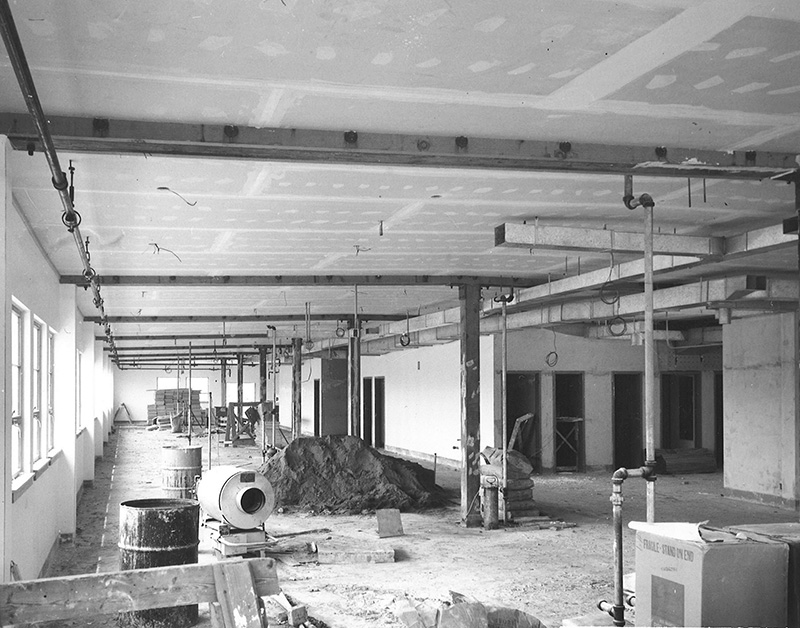 Eugene J. Smith and another employee work together in the ward of the X-101 Hospital in the 1950s