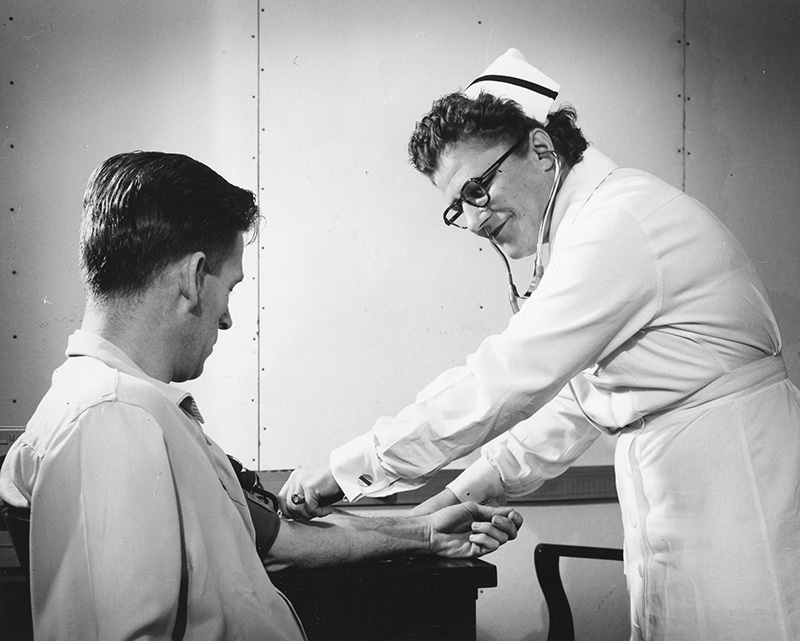 Anabelle Sigmund takes patient’s blood pressure in 1954