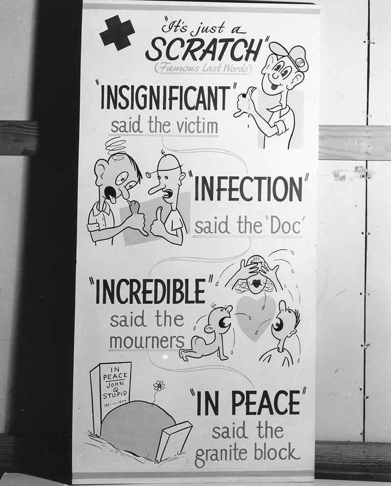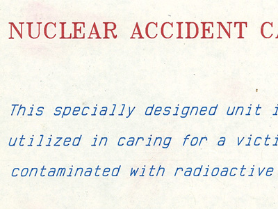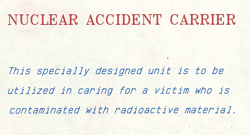 Sign found on an accident carrier used to hold contaminated employees while they were being treated by the medical staff