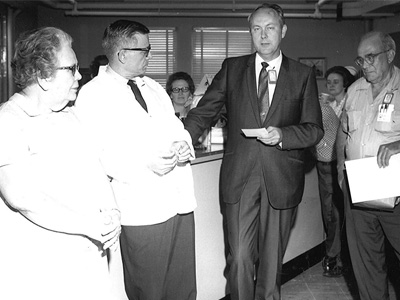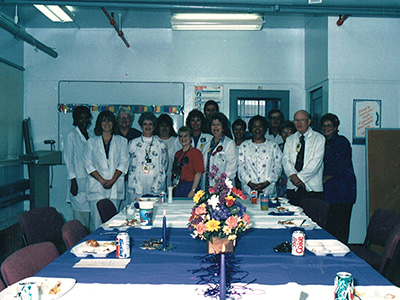 Medical staff gathered to celebrate the retirement of Carol Allen, RN, 1997