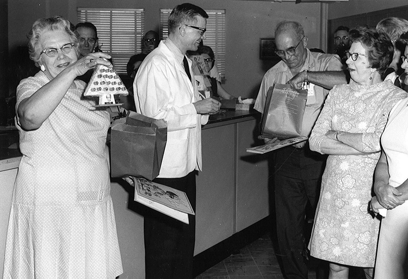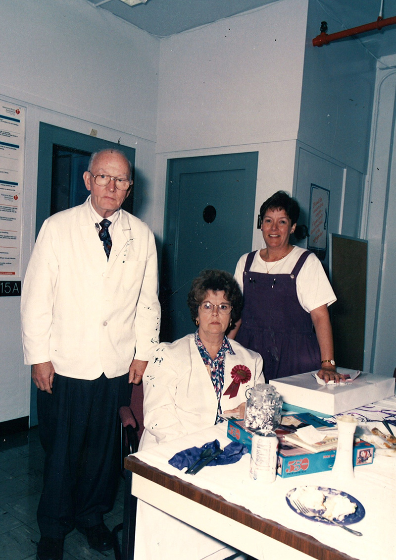 Helen Lewis' retirement party with Dr. Johnson and Dr. Lehman, 1950s