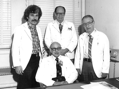 Dr. Edward Henson, sitting, celebrated his retirement in 1983 with fellow doctors Dr. Daniel Schlie, Dr. Phillip Mulder and Dr. George Spears