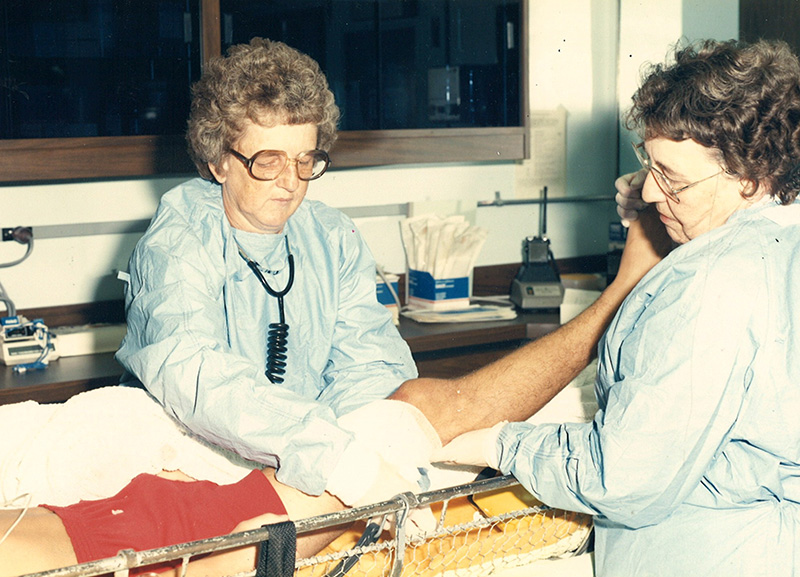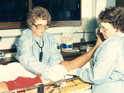 1988 - Ginnie Wagner takes the vitals of a patient during a training course in the X-101 ER