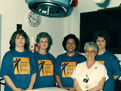 Nurses’ Week May 6-12, 1996. Pictured are Recca Ball, Ginnie Wagner, Jewell Collins, Judy Bernthold and Carol Allen