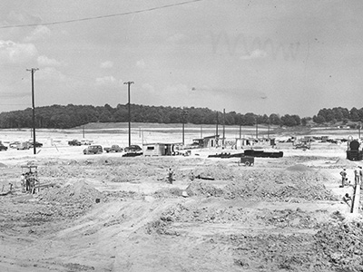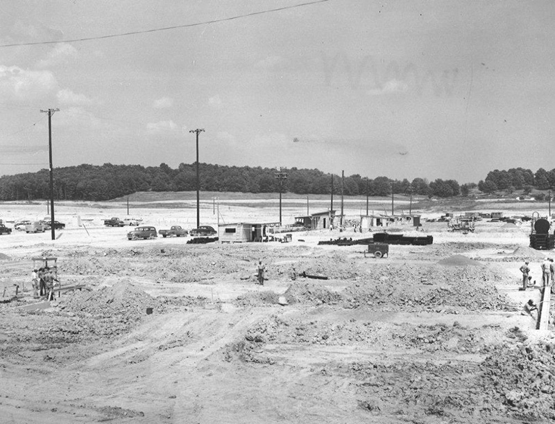 Looking northeast at the site of the cafeteria on August 12, 1953