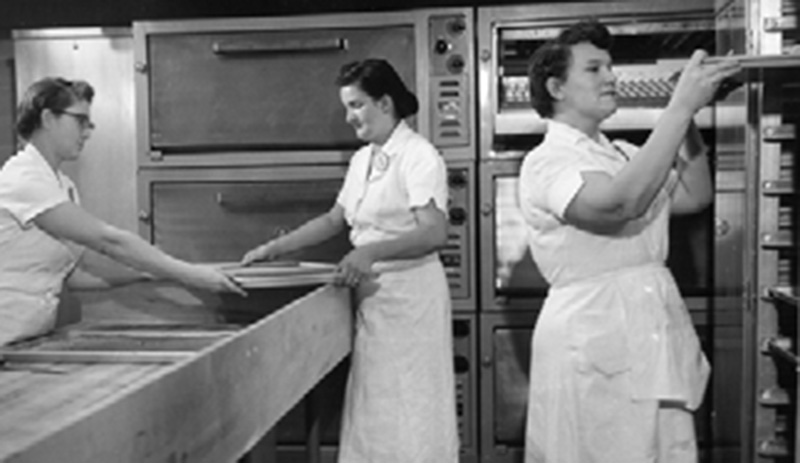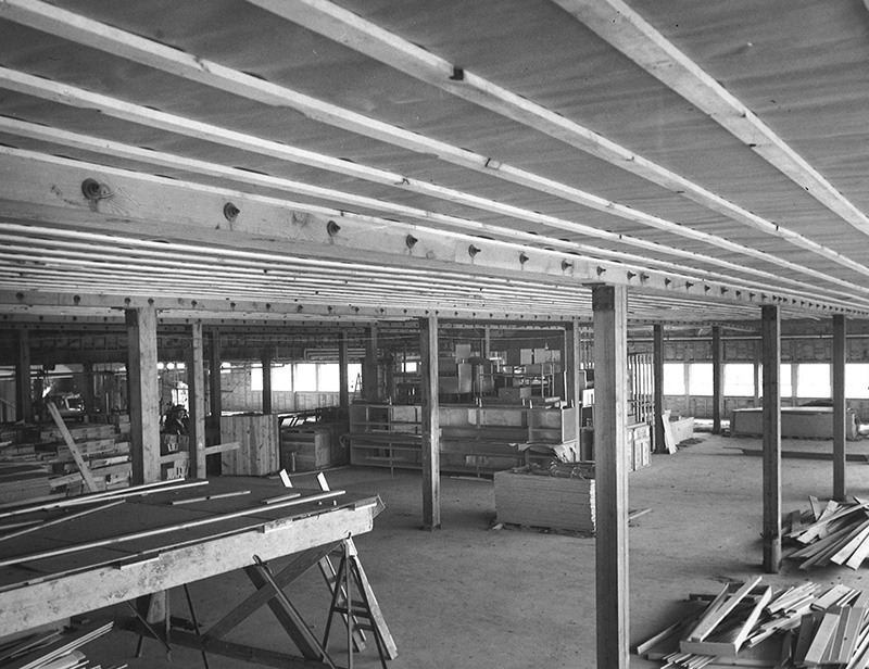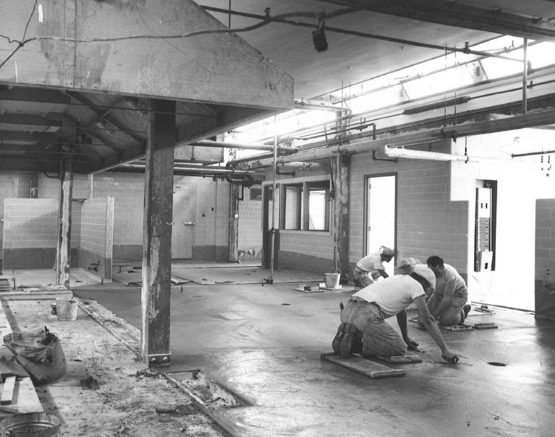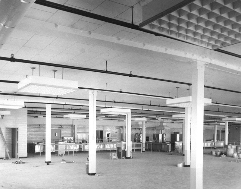 An interior view shows the cafeteria closer to completion - May 14, 1954