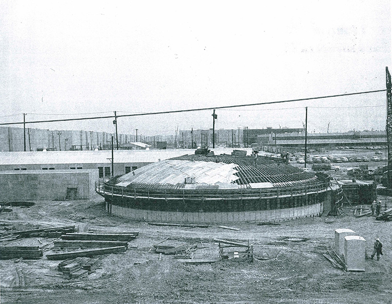 The X-300 Plant Control Facility provided all control, instrumentation and communication equipment required for supervision, direction and coordination of overall plant operations in one central location. The exterior walls, roof, floor slabs, stairs, tunnels, vault and other structural members are constructed of reinforced concrete which has considerable shielding qualities and resistance to blasts or shocks. At the time it was built in 1954, the building was said to be designed to be both earthquake proof and bomb proof. Also, the circular shape of the building and the dome-shaped roof offered similar resistance.