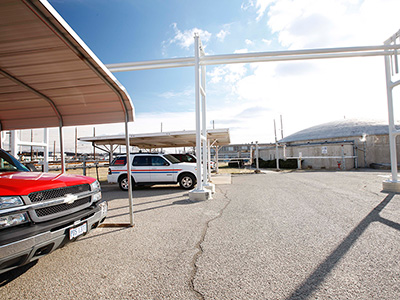 X-300 Plant Control Facility (PCF), Looking South With Plant Shift Superintendent (PSS) Emergency Command Vehicles in Foreground