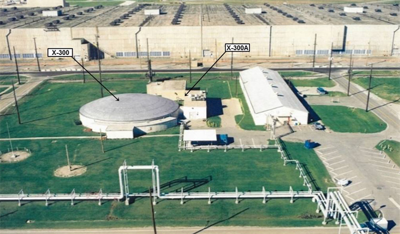 X-300 Plant Control Facility (PCF) Exterior, Looking North Northwest withX-640-2 High Pressure Fire Water (HPFW) Tank in Background