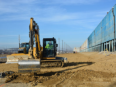 Excavator work takes place for the haul road prior to culvert placement at the southwest corner of the X-326 on December 15, 2020