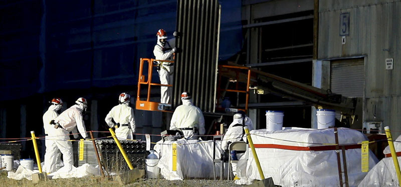 November 19, 2020, crews began applying blue fixative to the transite panels on the exterior of the X-326 building