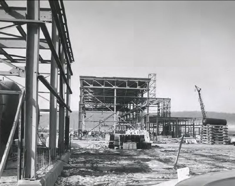 The X-342A Feed, Vaporization, and Fluorine Generation Facility and the X-342B Fluorine Storage Building were designed and built by the Peter Kiewit Sons’ Construction Company. The X-342A is used to process cylinder heels. It is equipped with steam autoclaves to heat the parent cylinders and cold boxes to keep the receiving cylinders cooled for more efficient transfer operations.