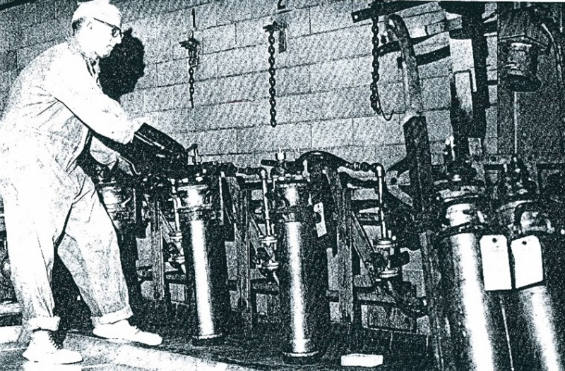 The Cylinder Decontamination Station was designed for the decontamination, including “heel” removal. A heel is a small mass of leftover UF6 and non-volatile uranium products. The uranium solution obtained from the decontamination process was stored for eventual processing or discarding at the solution recovery facility. After decontamination, the cylinders were completely cleaned and rinsed inside and out with water (steam) and dilute nitric acid to remove trace uranium, as detected by Health Physics personnel.